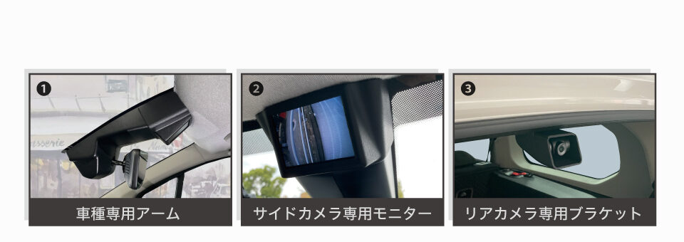 ① デジタルミラーを専用アームで美しく、かつ強固な取り付けを実現。