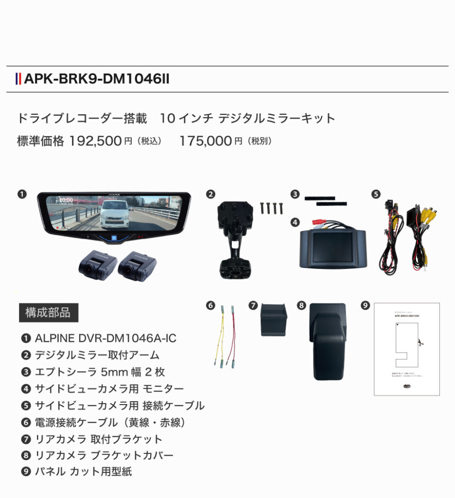 デジタルミラー本体を “DVR-DM1046A-IC”に変更も可能です。