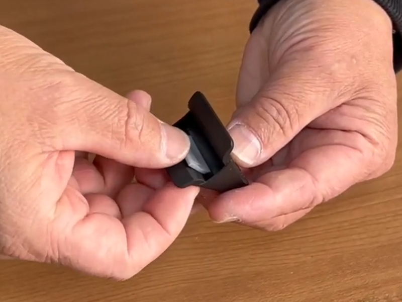 スペーサーが溝にはまり込むように、しっかり押さえ込みながら指で挟み込み、「パチッ」と音がするまで入ったら装着完了です。